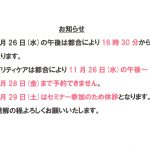11月26日(水)の午後は都合により16時30分から受付となります。